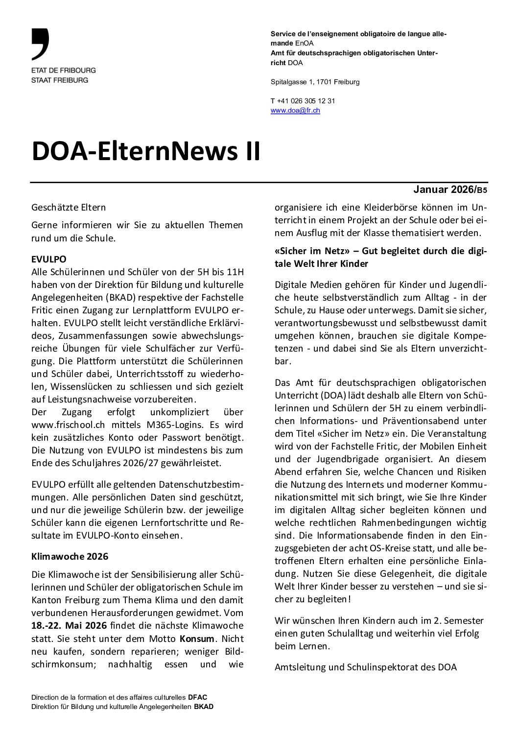 Für sämtliche angebotenen Bildungsgänge (Gymnasium, Fachmittelschule, Vollzeitliche Handelsmittelschule) werden an den Orientierungsschulen und/oder an den Mittelschulen alljährlich Informationsveranstaltungen für die im Kanton Freiburg wohnhaften Schülerinnen...